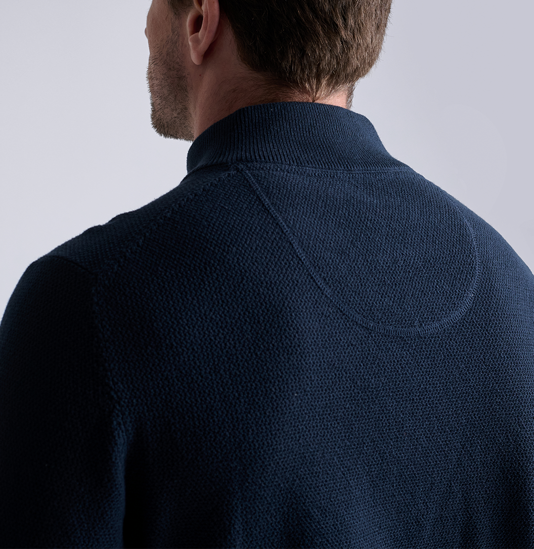 O Suéter Tricot Minimal é feito com algodão 100% natural em uma malha encorpada e respirável. Com modelagem regular e design atemporal, combina elegância discreta e conforto absoluto. A textura sofisticada do tricot e o zíper metálico entregam presença e versatilidade em qualquer ocasião — seja como sobreposição ou peça principal nos dias frios.